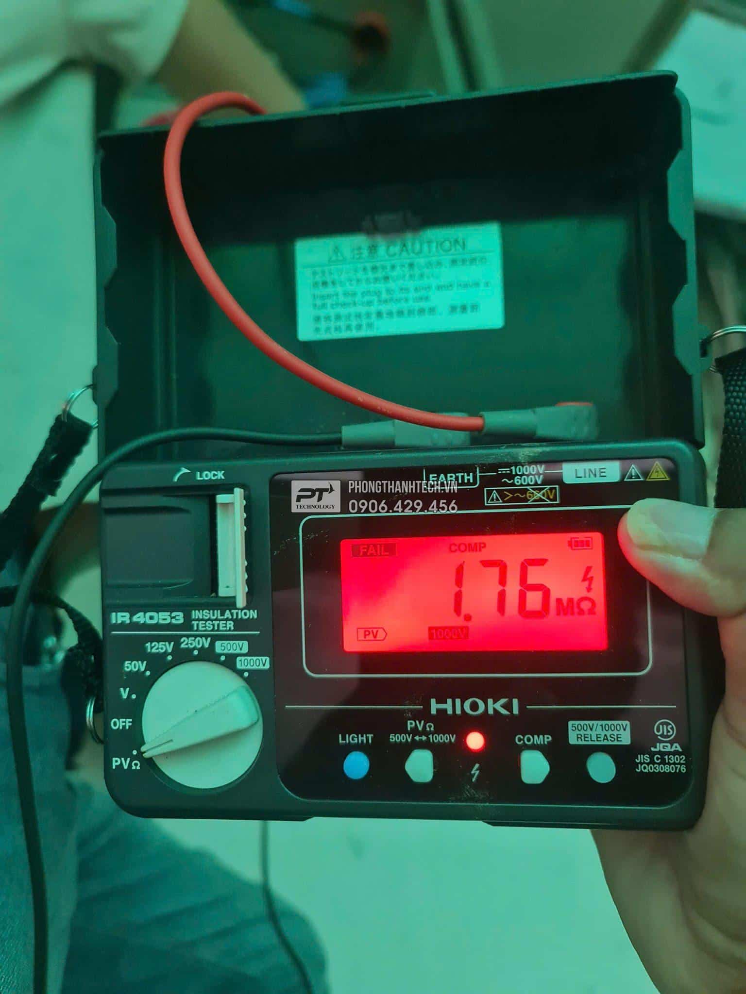 - Đo điện trở cách điện PV bằng máy chuyên dụng Hioki IR4053 với các vật dẫn điện như máng, cáp, khung sắt, rây nhôm…
