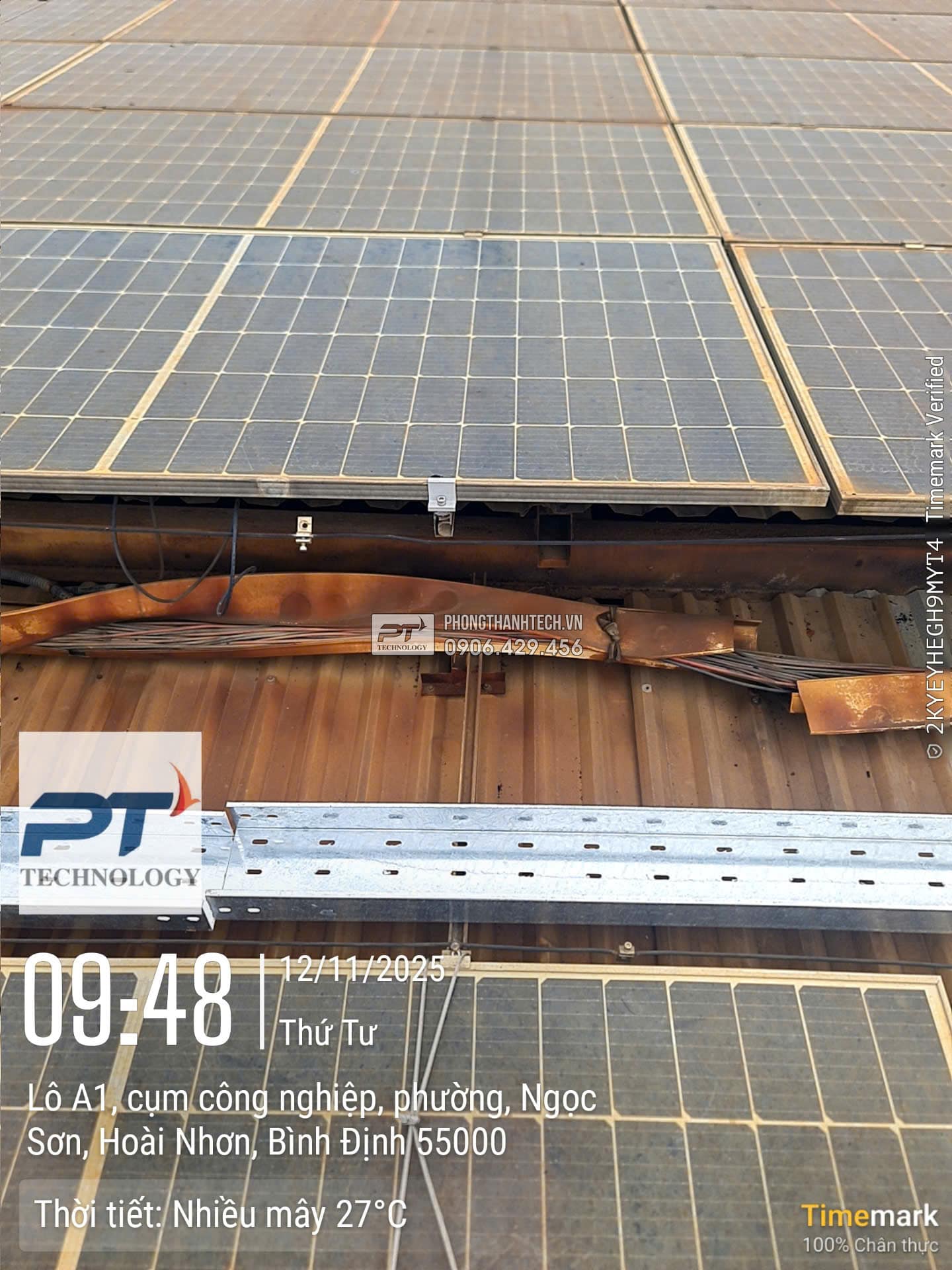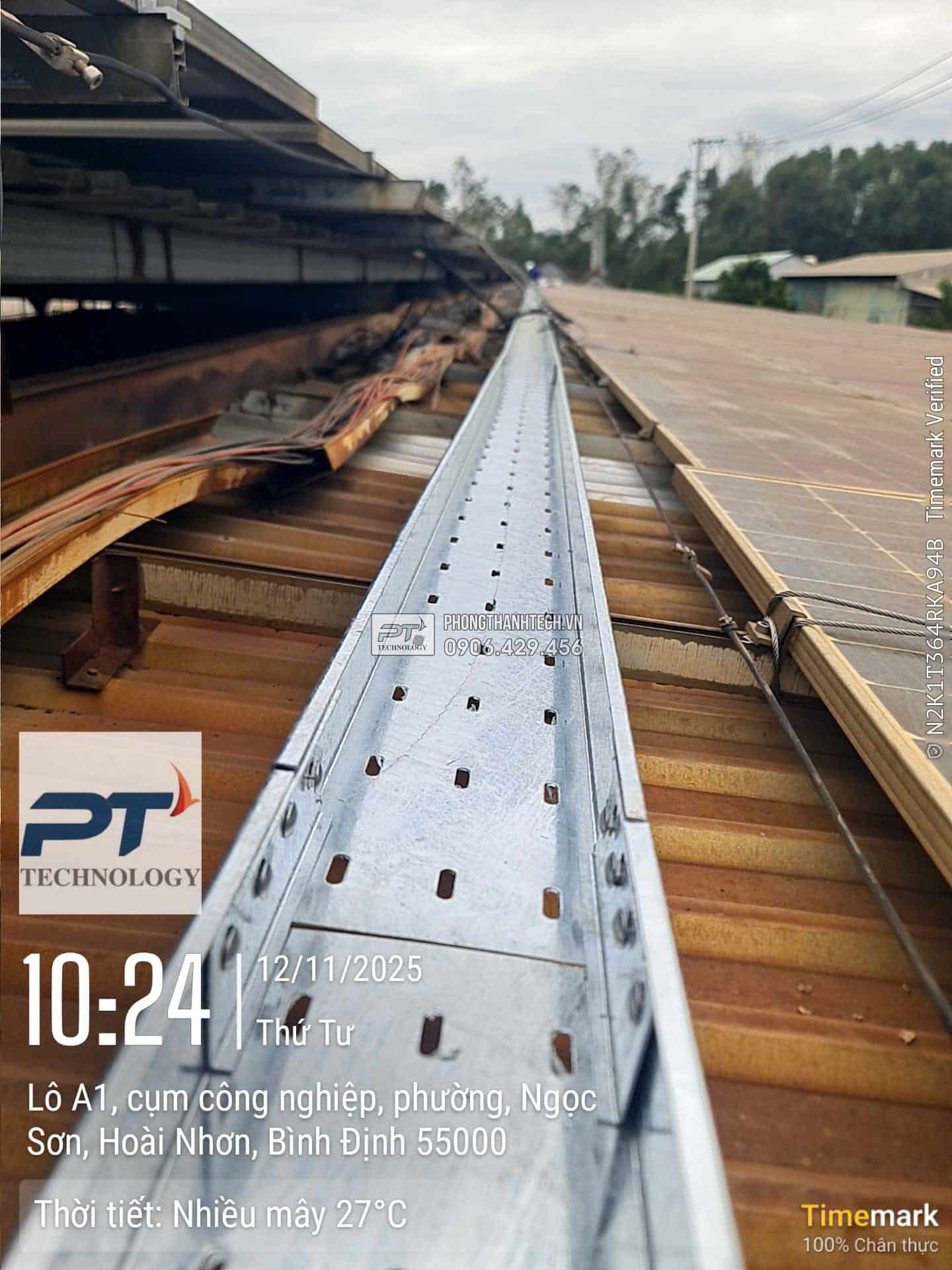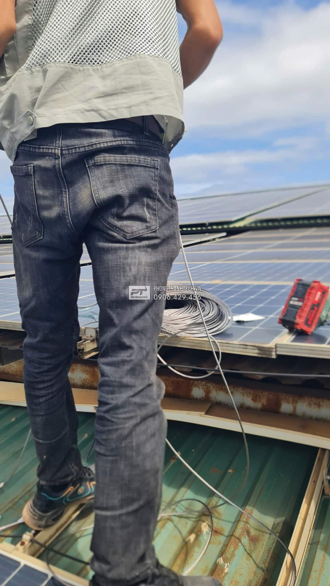 Ngày 5,6,7,8: Thay thế hộp nhựa bằng tray cable DC nhúng nóng, tầm soát tấm PV, End Clamp, Mid Clamp, sắp xếp chỉnh sửa PV string, dây dẫn DC, sửa chữa hạ tầng điện trên mái.